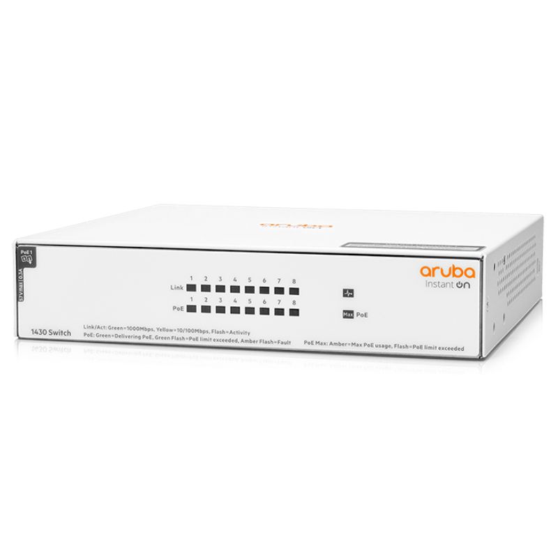 The Aruba Instant On 1430 Switch Series is a plug-and-play unmanaged switch series for small businesses looking for simple, reliable, and low cost network connectivity. These easy-to-use switches deliver Layer 2 Gigabit Ethernet switching capabilities — at an affordable price point — to help connect and share common resources like printers and access points, without any complicated network configuration. With plug-and play operation, fully automated functions, zero ongoing maintenance, and Power over Ethernet (PoE) models, these switches deliver simple, reliable connectivity for the smallest SMBs and home offices.