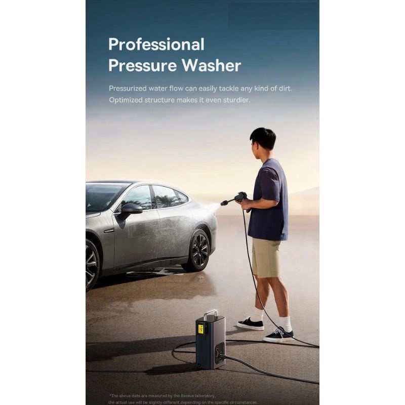 - Baseus F0 Car high pressure car wash machine with 1000W capacity, 90bar pressure to meet the needs of cleaning cars, houses and gardens. 252L/h water flow helps to save water effectively.
