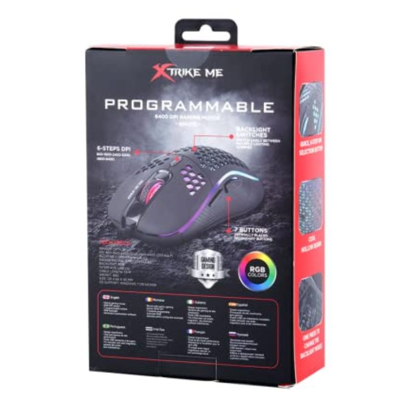Xtrike Me Wired Optical Gaming Mouse GM-512 6 Step DPI, 7 Buttons, 800/1600/2400/3200/4800/6400 For GAMERS, RGB Colors Backlight DPI