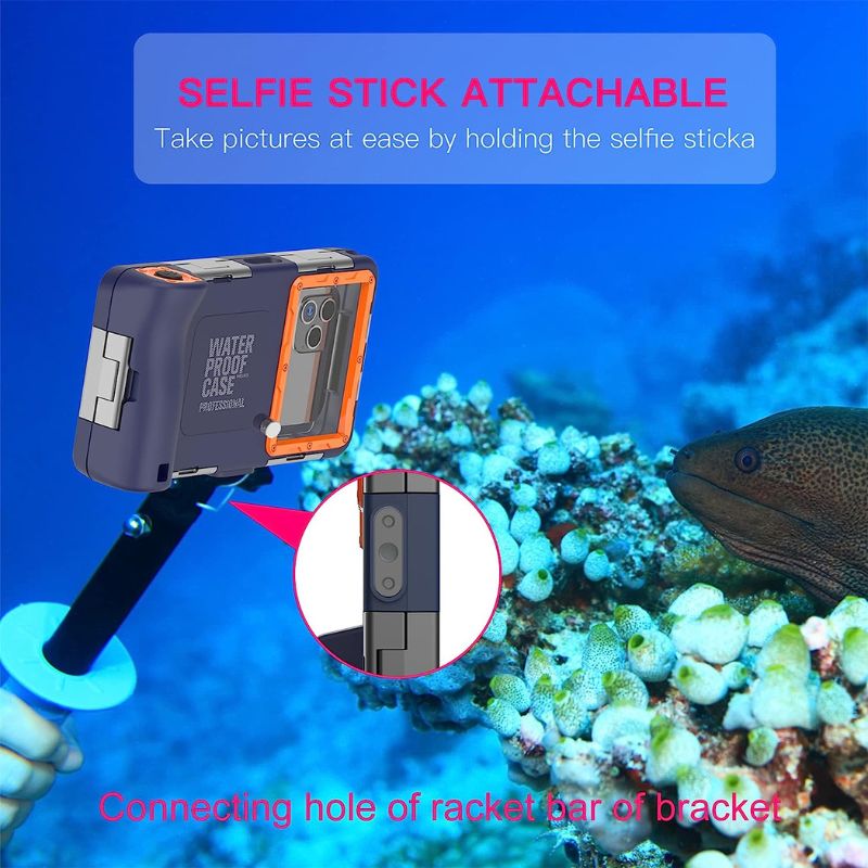 - Professionally designed underwater camera case, tested to protect your phone and make your phone work well when diving into water at a depth of 50 feet/15 meters for 30 minutes. Professional diving snorkeling case support taking pictures and recording videos. You can use the rear and front cameras to take photos or record videos, capture every moment of your funny time