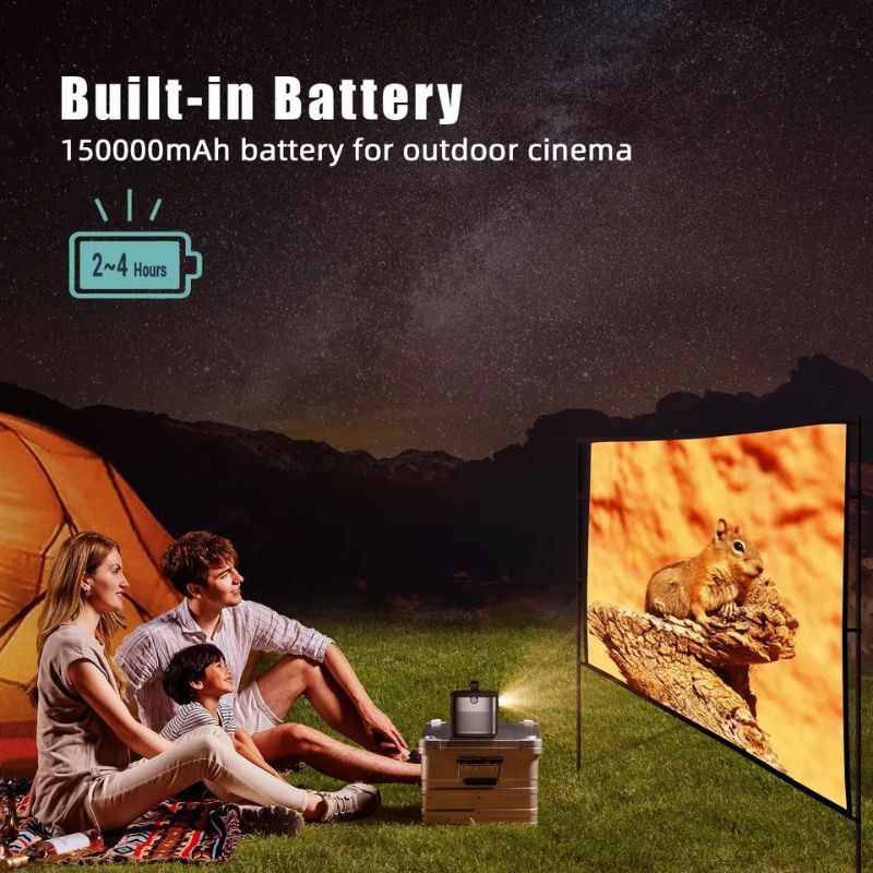 - BYINTEK Pro projector built-in 1560mAh rechargeable lithium battery which can last 2-4 hours after full charging, supports 30 ~ 300 inch big screen projection, portable size (5 , 07 * 5.86 * 5 inch) with carrying handle, perfect for outdoor, travel, video watching and display without limiting the power cord. It is a great gift for your family and friends.