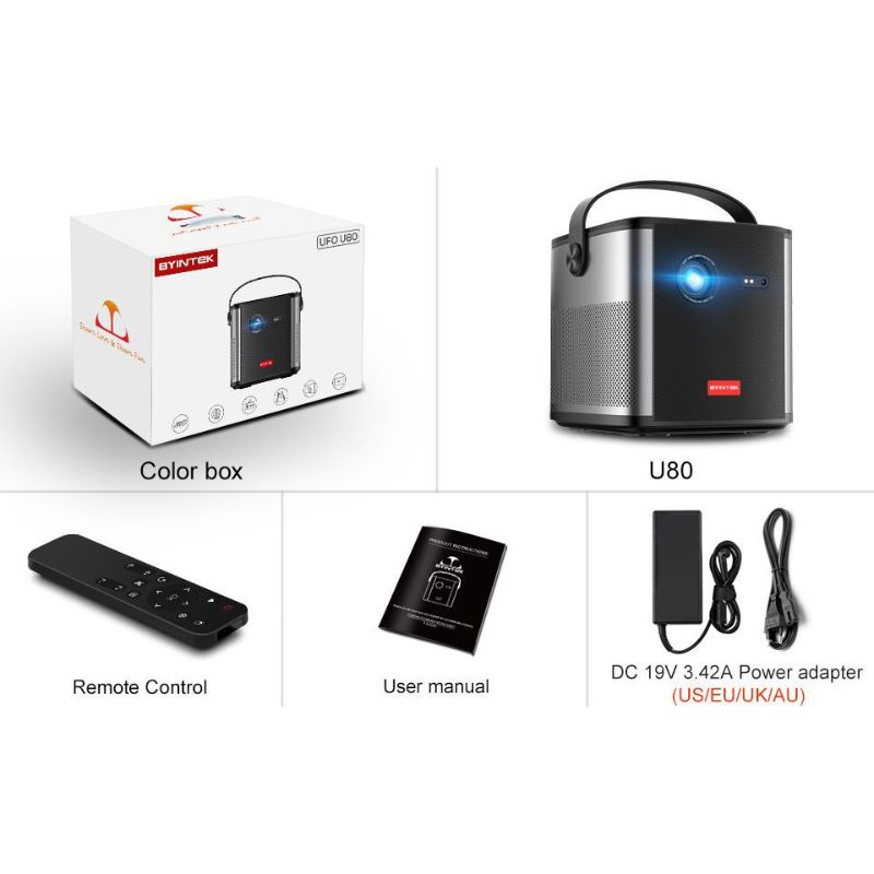 - BYINTEK Pro projector is equipped with a powerful dual-band stereo HiFi speaker (4Ω 5W * 2), delivering higher tones, precise alto and powerful bass. Audio output, 3.5mm connectors, can connect headphones or speakers. Wi-Fi display projection film / game for smartphone tablet computer. This projector will provide you with an excellent visual experience.