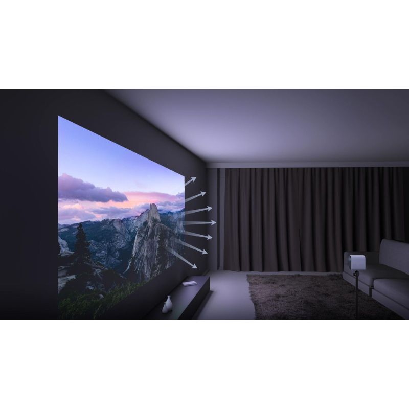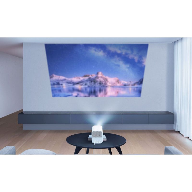 The Mi Smart Compact Projector uses diffuse reflection imaging, where the projection light reaches human eyes through diffuse reflection, in contrast with the direct light of conventional LCD televisions.