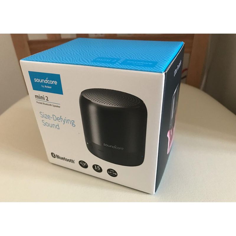 - Ankeer SoundCore Mini 2 Pocket Bluetooth SpeakerSoundcore Mini 2The Pocket-Sized Speaker with Big SoundBig BeatsA customized 6 W driver with built-in BassUpTM technology supplies sound that defies Soundcore Mini 2’s compact size. Fill the room with full-bodied audio; crisp, clear highs and deep, rich lows.IPX7 Waterproof ProtectionAn advanced casing offers impenetrable protection against water, rain, dust, mud and more. Soundcore Mini 2 even withstands being submerged in up to 3.3 ft (1 m) of water for 30 minutes.Non-Stop Music15 hours of non-stop entertainment is powered by a high-performance Li-ion battery and Anker’s superior power management technology. Soundtrack your car ride, beach party and even the ride home—all without running out of power.Expand Your SoundTrue Wireless Stereo technology makes it easy to pair your speaker with a second Soundcore Mini 2 for stereo sound with greater spatial depth and even bigger volume.Play AnywhereSoundcore Mini 2’s sleek metal finish with non-slip rubber base is robust, yet lightweight. Small enough to fit in your coat pocket, it is the perfect musical companion.Enhanced ConnectivityBluetooth 4.2 ensures a strong, skip-free connection up to 66 ft away, while the built-in microphone allows you to answer calls.