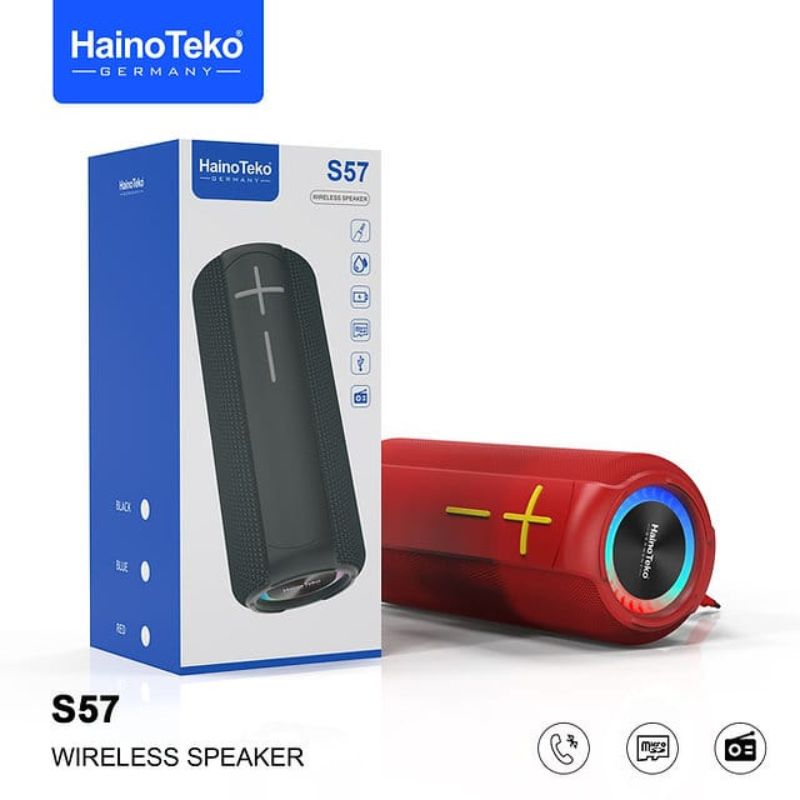 - The portable speakers Haino Teko S57 BT wireless is resistant to rain, gentle spray, therefore it is applicable in shower room, by the pool or beach. But do not drop it directly into water.