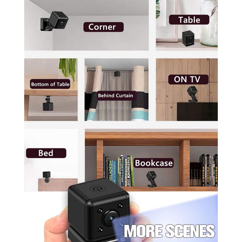 - The Tiniest Mini Camera / 0.9*0.9*0.9 inc. / 0.35 oz. / Allows to become a real detective, it is easy to hide anywhere in your apartment, bedroom, office, garage, or anywhere to get hard evidence.