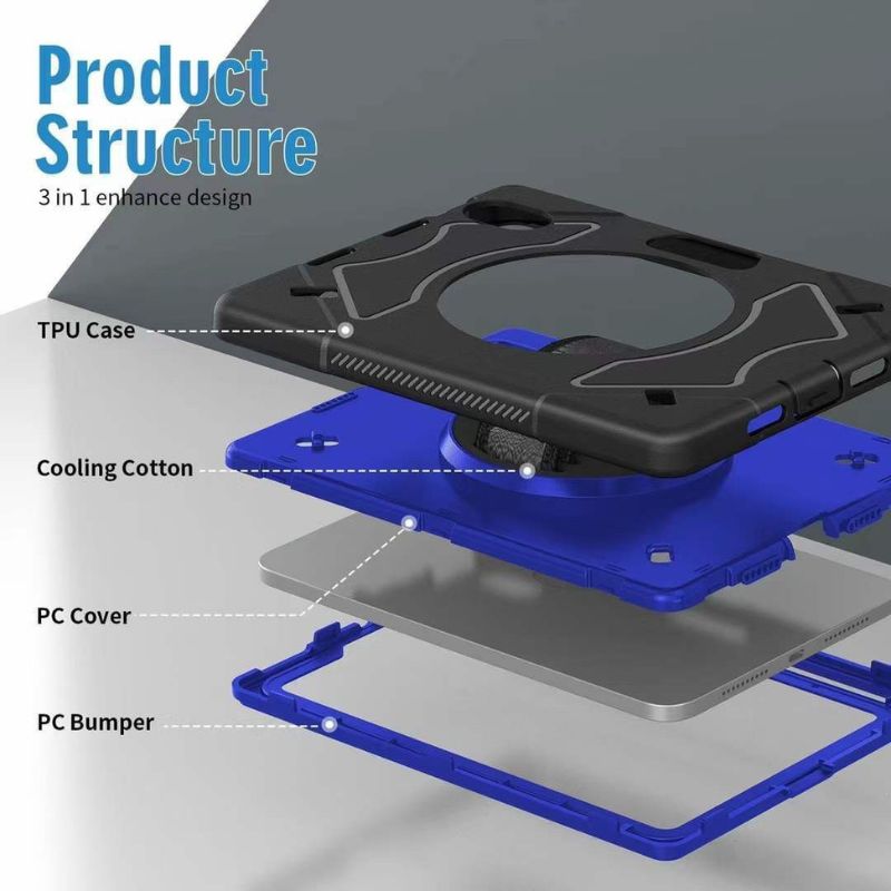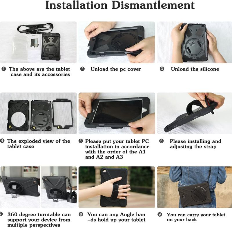 - [360 Degrees Rotatable Kickstand & Adjustable Hand Strap] Built-in stand offers optimum position for typing or viewing; Ergonomic and comfortable back handle allows you to grip your iPad securely and steadily with one hand, worry-free from dropping it. Ideal for kids, students, teachers or anyone else who needs it for presentations, conferences and travelling.